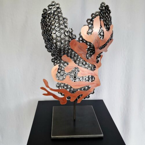 Sculpture de bustes féminins en métal. Il apportera du contraste entre l’acier brut et la teinte Corail métallique