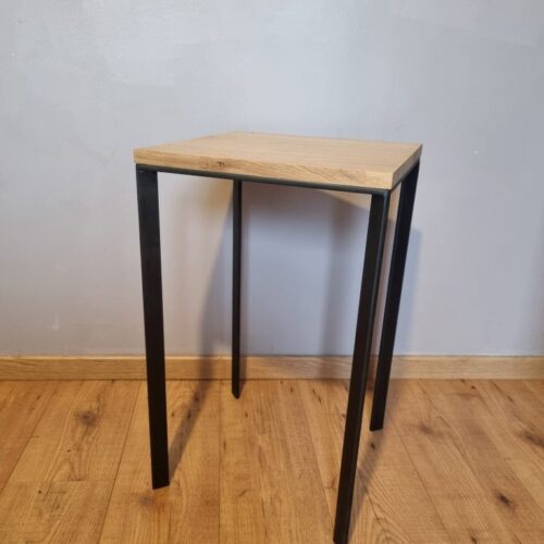 Guéridon en chêne massif associé à un piètement acier brute ciré.